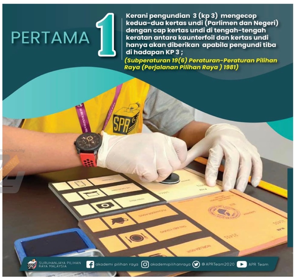 Maklumat lanjut mengenai nasihat SPR di dalam pengundian, sila layari laman web https://www.spr.gov.my/.