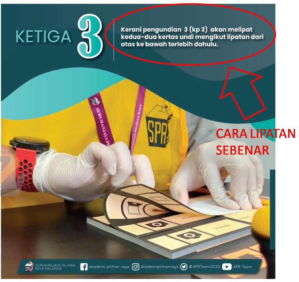 SPR telah memberikan nasihat mengenai cara melipat kertas untuk bagi mengelakkan undi rosak iaitu: