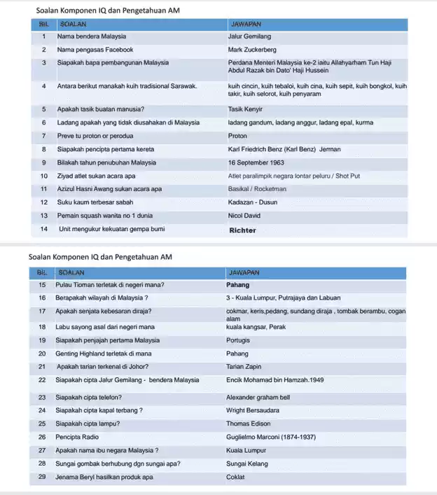 Bahagian B: Soalan IQ dan Pengetahuan AM