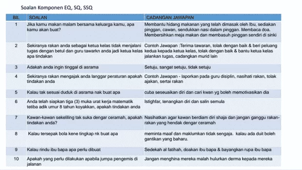 Bahagian A: Kecerdasan Insaniah (EQ, SQ dan SSQ) [20%]