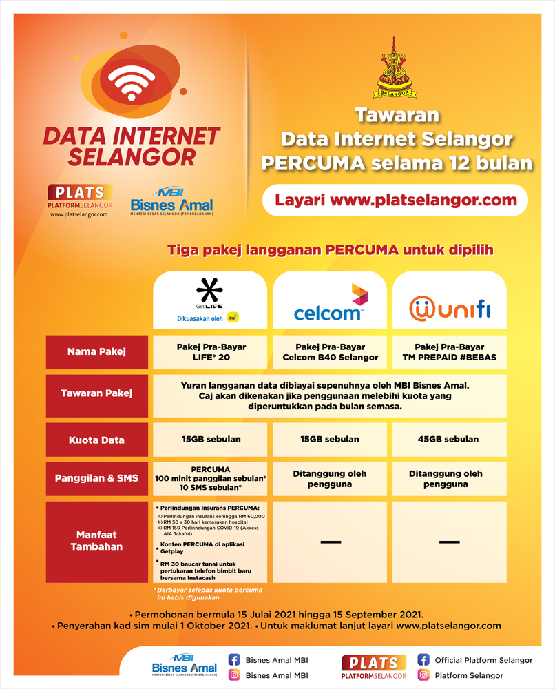 Permohonan bagi data internet ini dibuka mulai 15 Julai dan akan ditutup pada 15 September 2021.