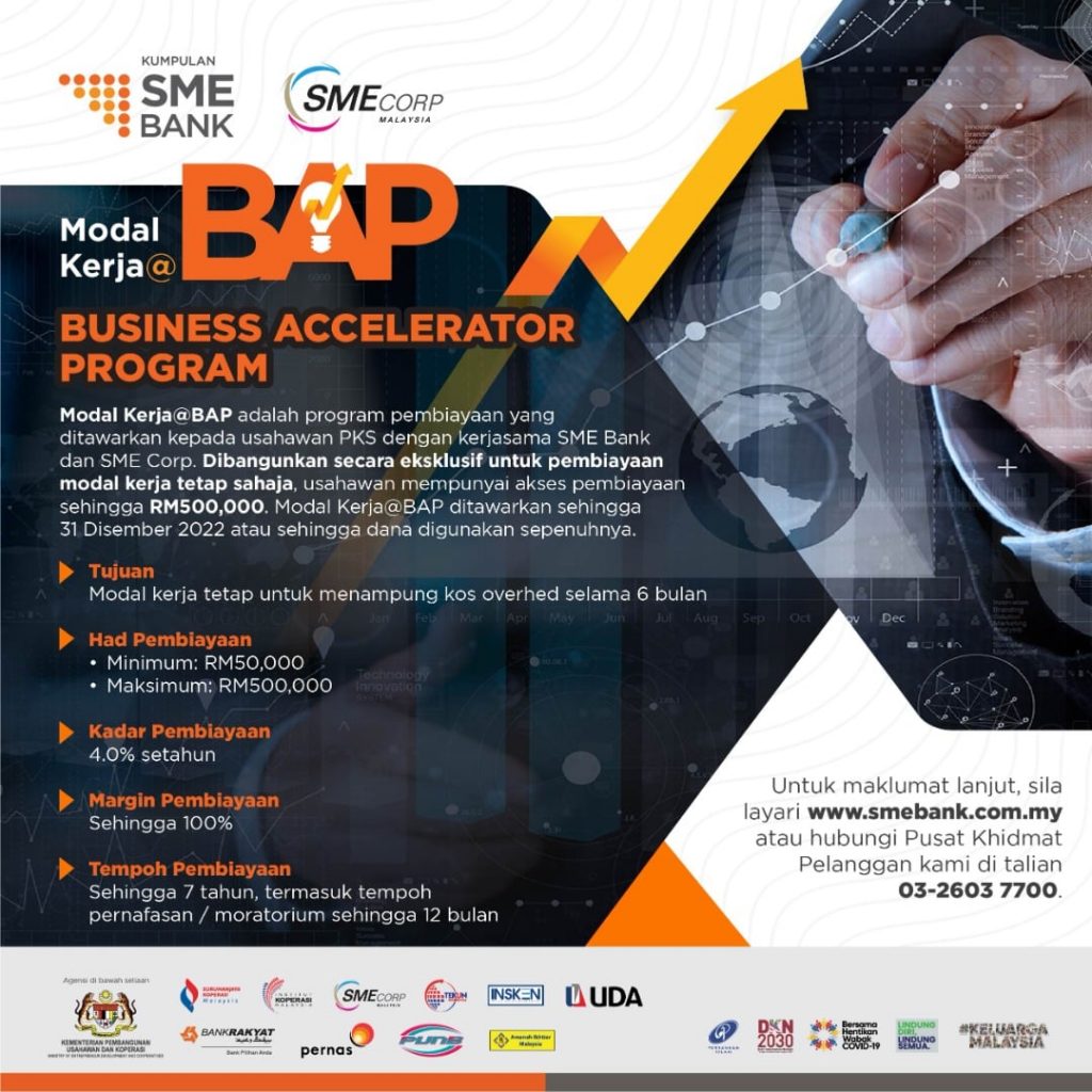 SME Bank dan SME Corp telah membangunkan satu program pembiayaan modal kerja tetap kepada usahawan Perniagaan Kecil dan Sederhana (PKS) iaitu Modal Kerja@Business Accelerator Programme (Modal Kerja@BAP).