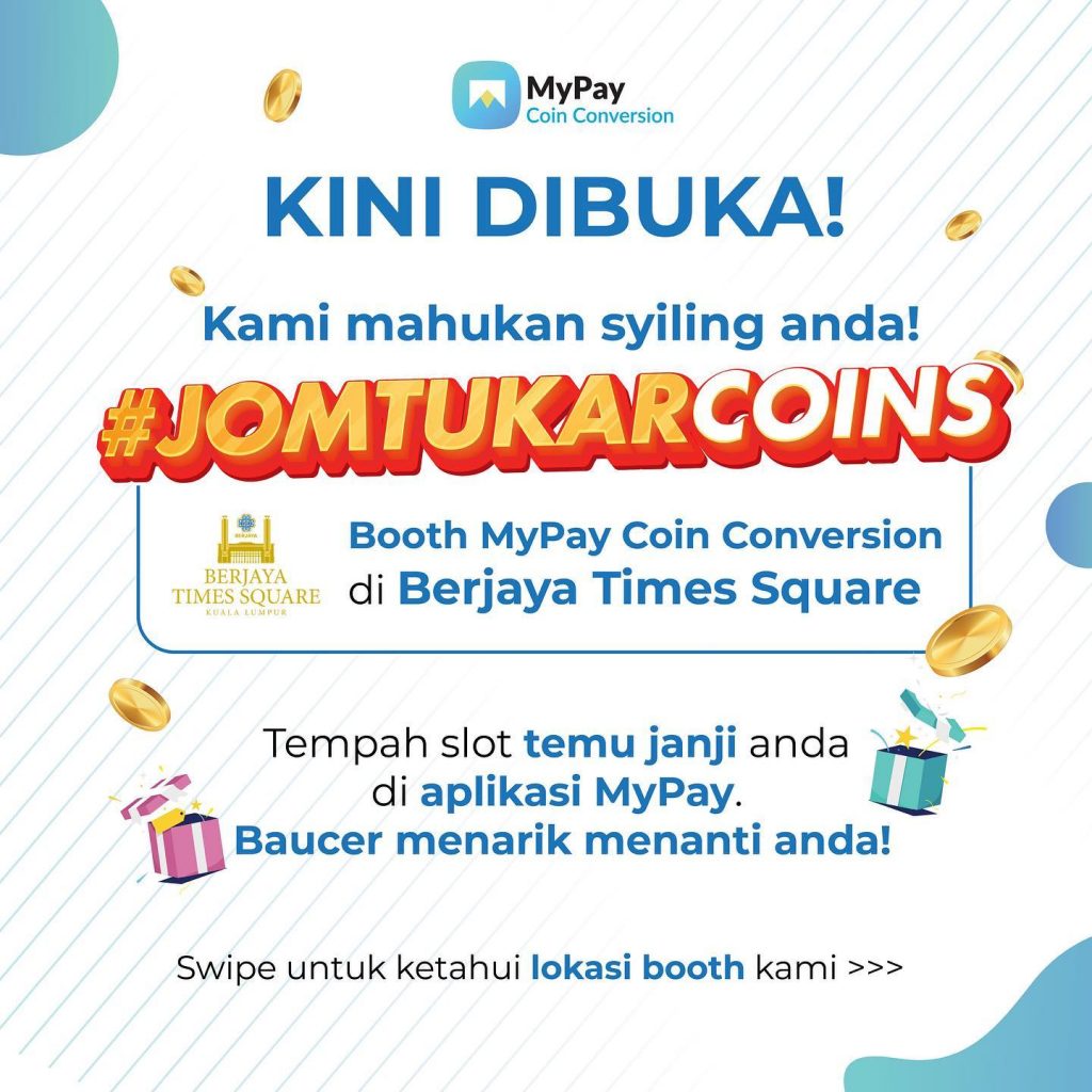 Orang ramai hanya perlu berkunjung dan membawa duit syiling terbabit di booth MyPay Coin Conversion untuk membuat penukaran tersebut.
