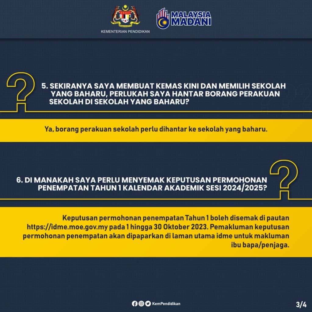 Soalan lazim berkenaan Pendaftaran Murid Tahun 1 Kalendar Akademik Sesi 2025/2026.