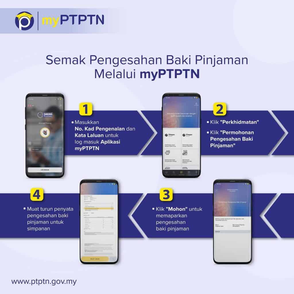 Mudah aje. Cukup ada satu telefon bimbit dan mempunyai data internet yang stabil untuk dapatkan pengesahan baki pinjaman melalui myPTPTN.