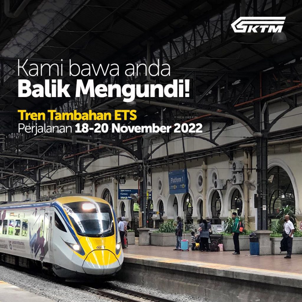 Maklumat lanjut mengenai Tren Khas Keluarga Malaysia dan ETS sempena PRU-15, sila hubungi Pusat Panggilan KTMB 03-22671200 atau melayari laman web KTMB https://www.ktmb.com.my untuk maklumat lanjut.
